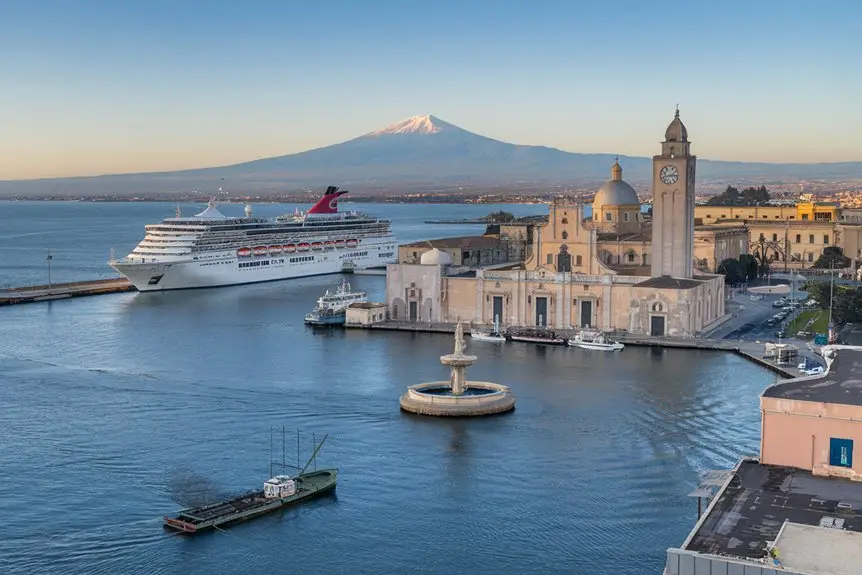 You’ll find Messina’s cruise port just a 5-minute walk from the city centre. The stunning cathedral sits right in the historic district, making it easy to visit. You can see the famous 60-metre Bell Tower and its astronomical clock from the port area.