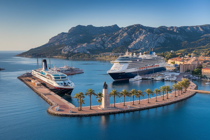 You’ll find the main cruise terminal at Quai l’Herminier, which runs along the city’s waterfront walkway. When you get off your ship, you’re right at the edge of the old town, and Napoleon Bonaparte’s birthplace is just a five-minute stroll away. Thanks to the port’s central spot, you won’t need buses or taxis to see the city – you can walk everywhere. Your ship gives you brilliant views of both the Mediterranean Sea and Ajaccio’s lovely cityscape, with its 16th-century citadel standing proud above the rest.