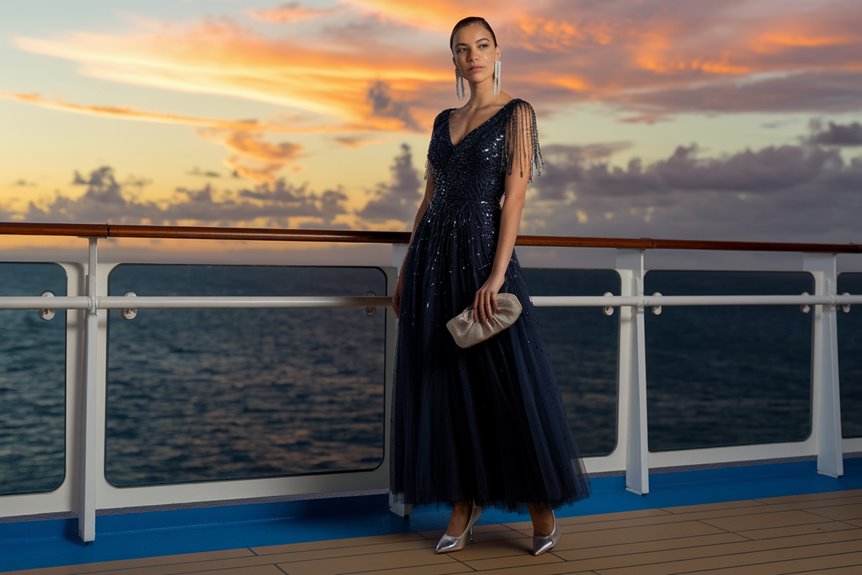 Think about renting if you hardly ever go to formal events or fancy wearing something trendy without keeping it forever. Many cruise companies work with rental shops that bring clothes straight to your room. For men, dinner suit hire usually costs £75-150, while women’s designer dress rentals go for £40-250. Just remember you’ll need to sort out adjustments if buying, or book rental fittings well before your cruise starts.