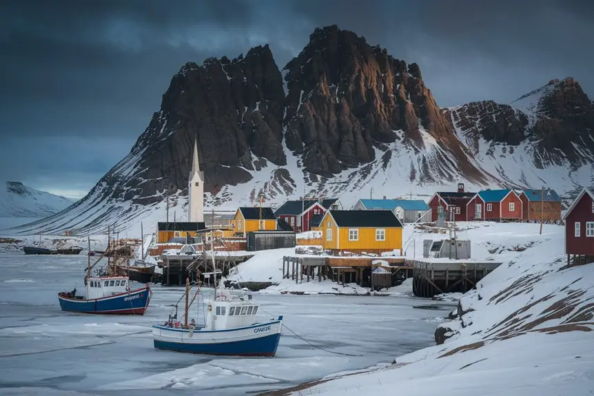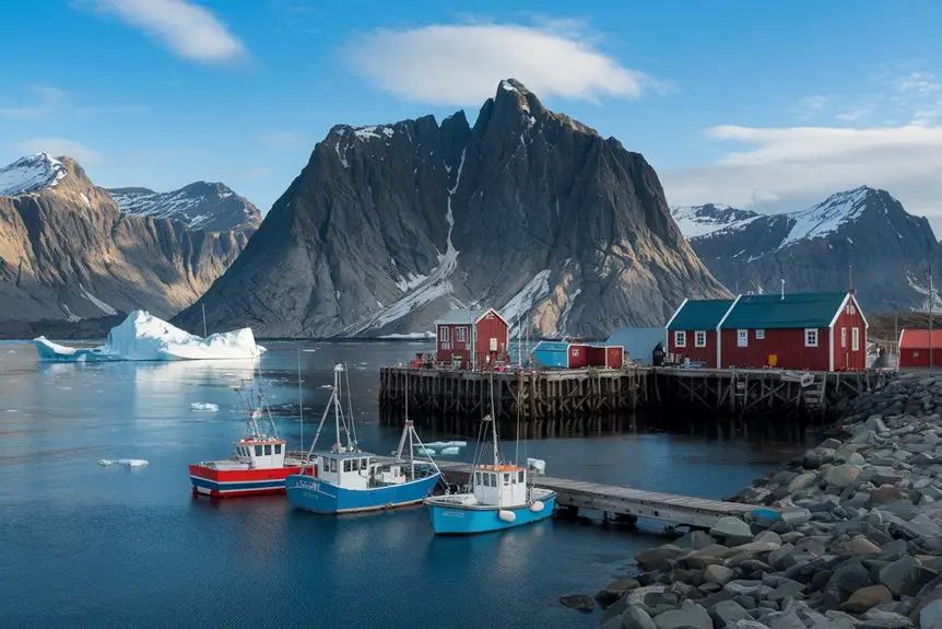 You’ll discover Paamiut where the Kuannersooq fjord meets the Labrador Sea. This small Greenlandic coastal town features brightly painted houses across its landscape. Summer visits (June-August) offer mild temperatures between 1-10°C.