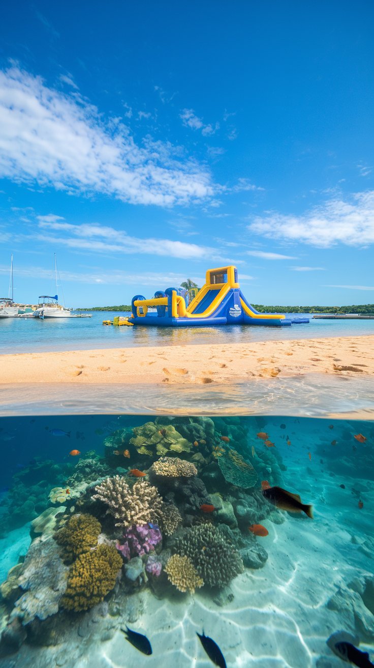 Kiddie Bonus Tip: Just next to the inflatable area is a section of reef with super shallow coral. Perfect for curious little snorkelers.